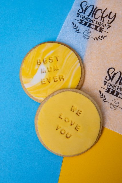 Show the mum or nan in your life how much they mean to you by sending a mother's day message box. Each box can be personalised to say whatever message(s) you like (we recommend 15 letters per biscuit), simply type your message(s) in the text box below and add how many biscuits you would like for each message. For example;